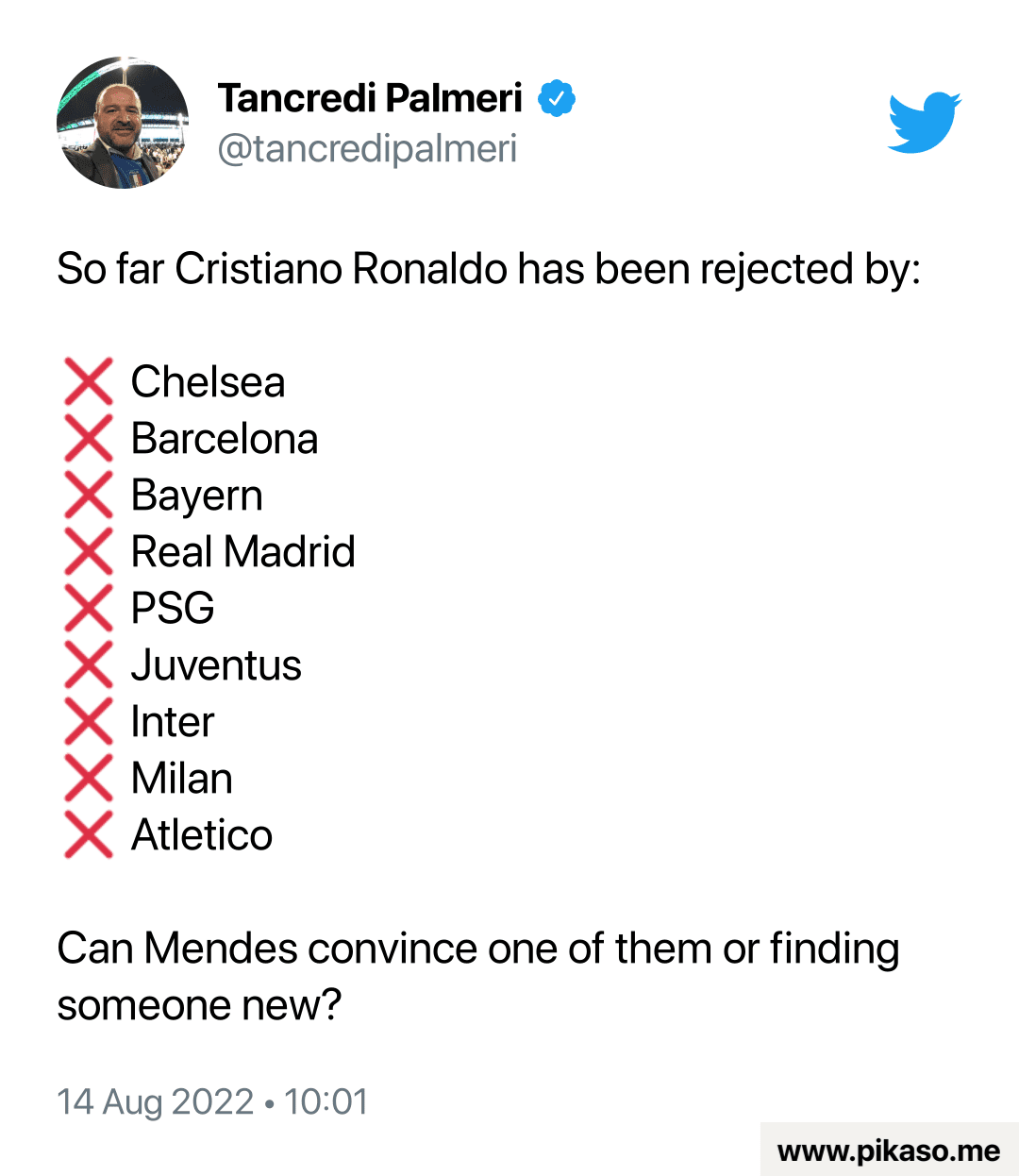 The Athletic and Fabrizio Romano have both mentioned all four options and there has also been talk of Ronaldo going the other way.